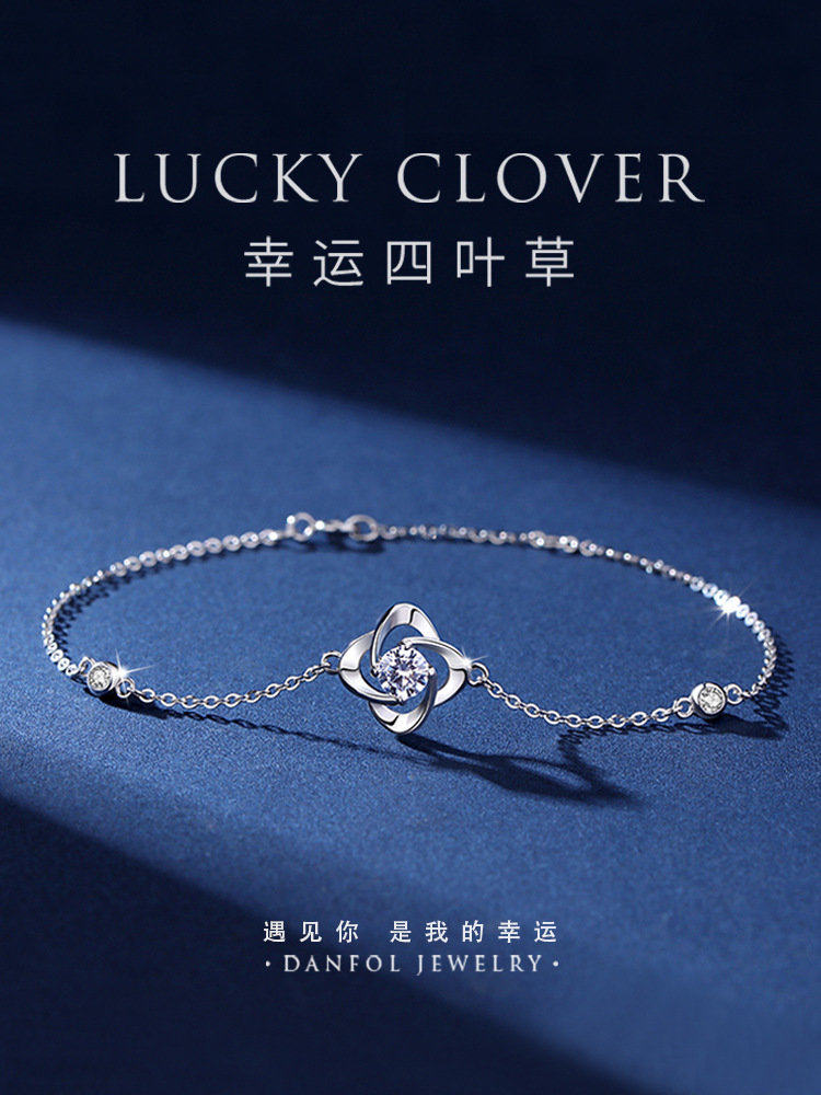 18k白金四叶草手链女简约ins小众设计冷淡风森系首饰手饰铂金水晶热门设计联盟服务商