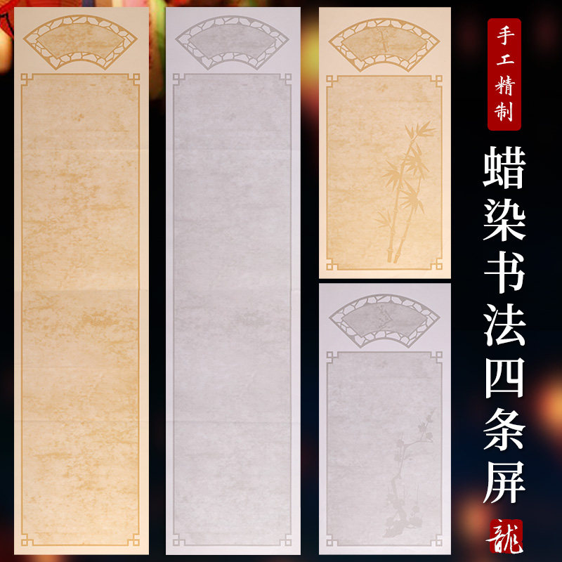 四尺四开古风梅兰竹菊四条屏扇面花式蜡染笺国画书法展览半熟宣纸热门设计联盟服务商