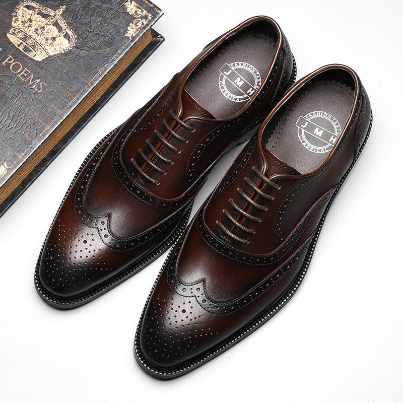 高档布洛克款式男鞋英伦雕花皮鞋男正装商务男士真皮鞋子婚鞋尖头热门设计联盟服务商