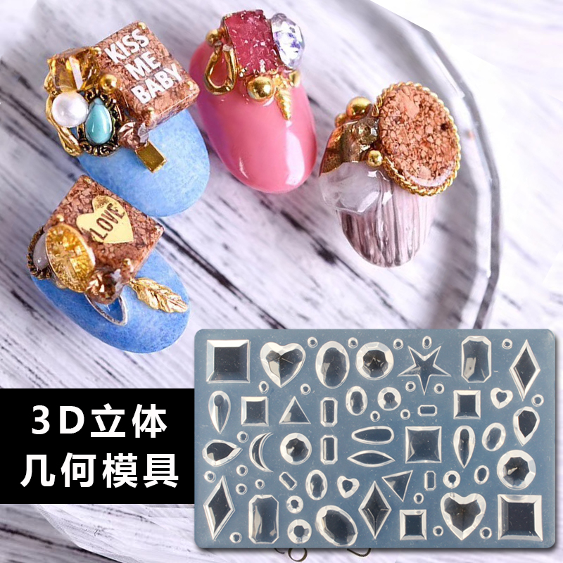 新款美甲模具3D立体雕花宝石滴胶几何图案光疗模型甲油胶DIY饰品热门设计联盟服务商