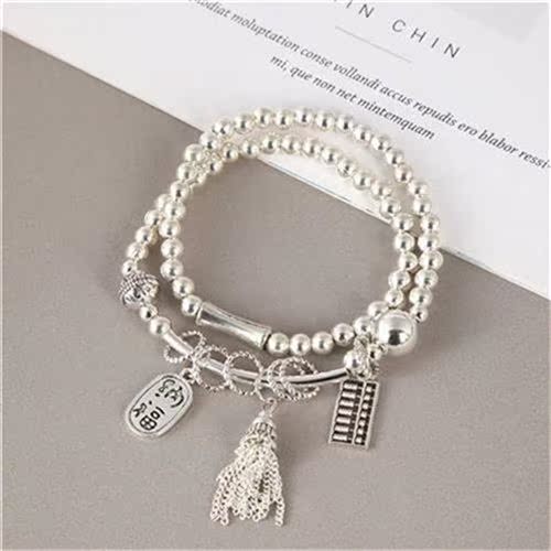 银珠流手两d圈吊链女复o古藏银好运猫苏坠手串网红款手环饰品礼热门设计联盟服务商