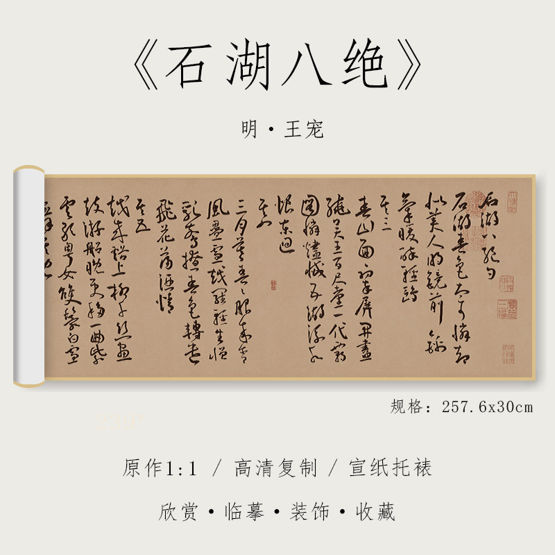 明 王宠 《石湖八绝》1:1真迹高清复制品宣纸微喷行书毛笔书法字帖临摹精裱手卷 纸中作乐观古系列热门设计联盟服务商