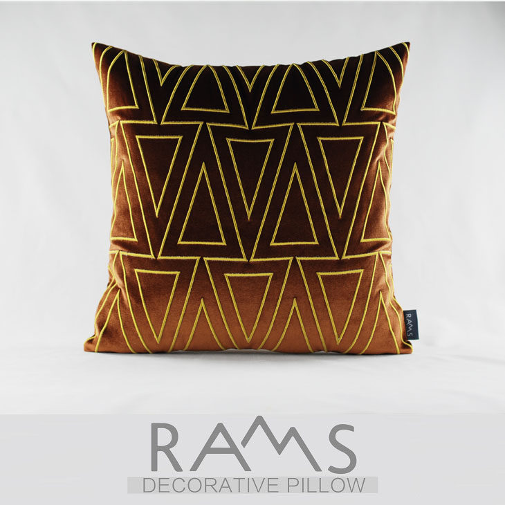 欧式样板房靠垫沙发抱枕床头大靠包现代简约设计师咖色刺绣花靠枕热门设计联盟服务商