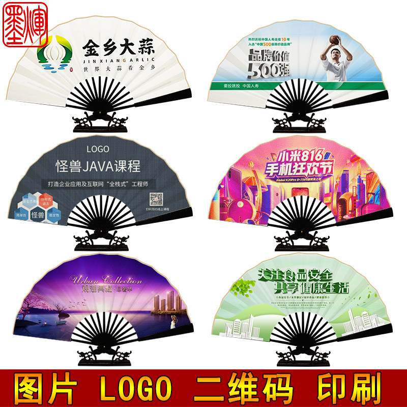 来图定制扇子个性广告扇酒吧logo图片二维码图案印刷宣纸折扇定做热门设计联盟服务商