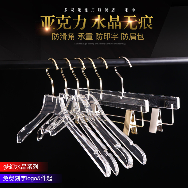 服装店透明水晶亚克力衣架女装婚纱店女士儿童衣挂有机玻璃裤架热门设计联盟服务商