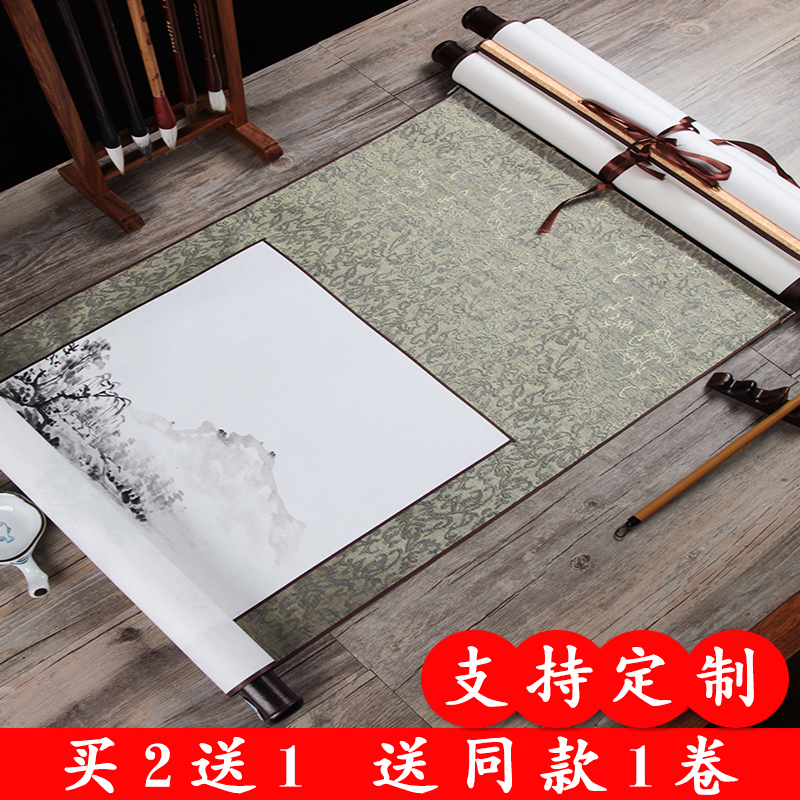 千寿精装裱四尺空白卷轴挂轴横幅毛笔字挂画书法作品纸国画创作卷轴空白纸仿闺生半熟宣纸挂轴定制批发热门设计联盟服务商