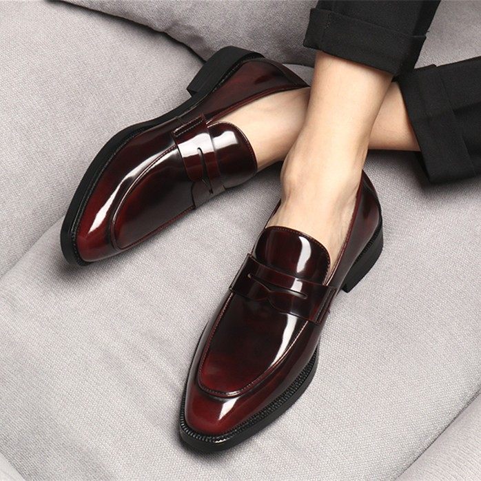 高端品质秋季新品男士商务正装皮鞋酒红色亮皮单鞋一脚蹬头层牛皮热门设计联盟服务商