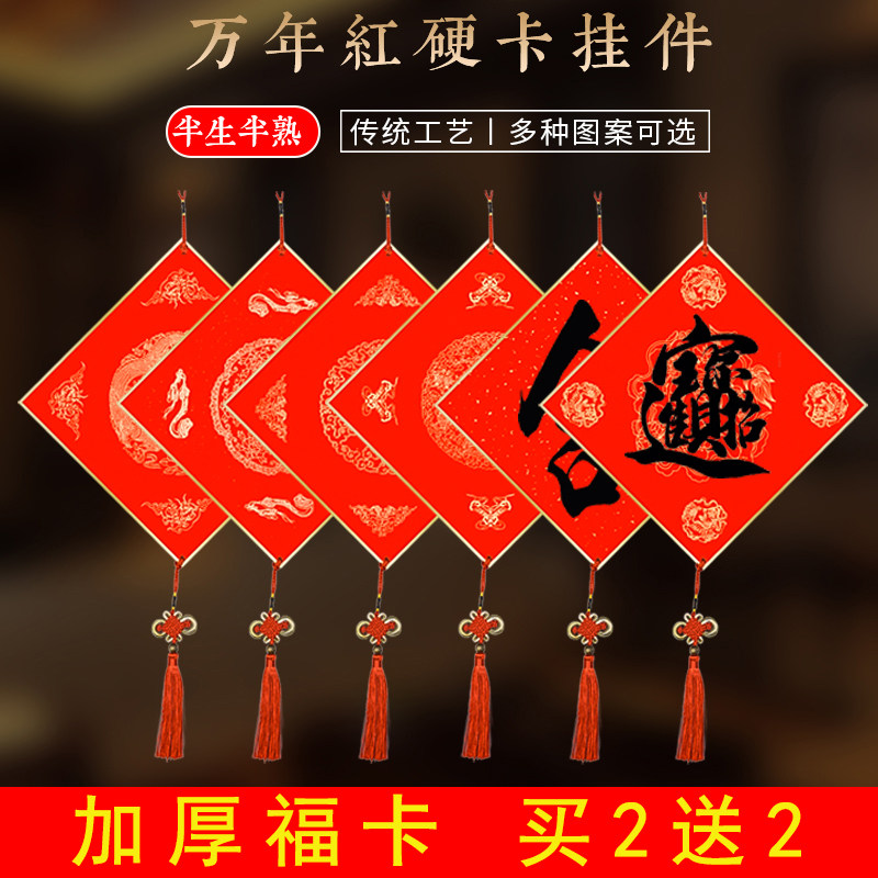 千寿万年红硬卡福字斗方中国结挂件宣纸卡纸加厚空白手写福字悬挂装饰福卡中国风春节毛笔书法作品纸春联纸热门设计联盟服务商