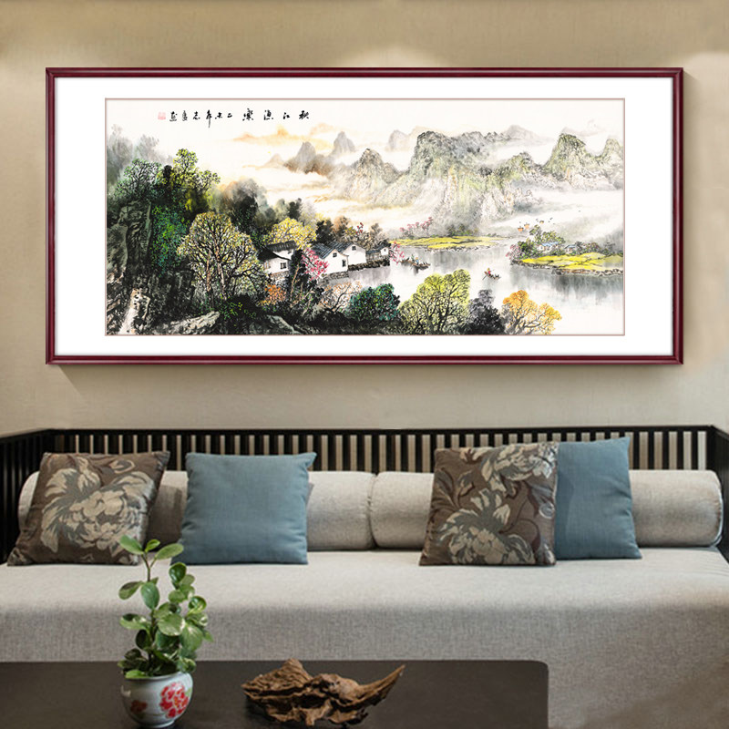 壁画办公室客厅装饰画水墨画山水画国画中式画沙发背景墙画吉祥画热门设计联盟服务商